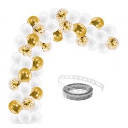 Zestaw balonów wraz ze specjalną taśmą do stworzenia eleganckiej girlandy w biało złotej kolorystyce