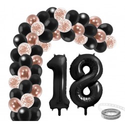 Zestaw balonów wraz ze specjalną taśmą do stworzenia girlandy w kolorystyce różowego złota i czerni