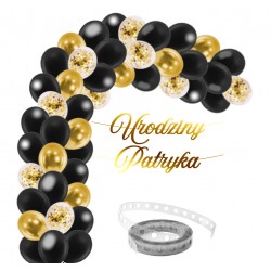 Zestaw balonów wraz ze specjalną taśmą do stworzenia girlandy w eleganckiej czarno złotej kolorystyce